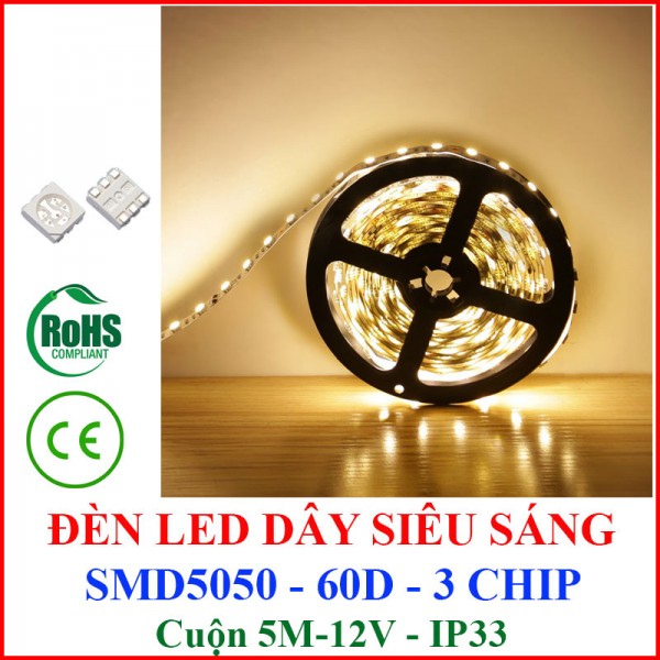Đèn led dây siêu sáng SMD5050 3 chíp cuộn 5m sử dụng chip LED SMD5050 3 Chíp